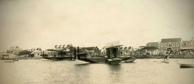 It was on Saturday, August 18, 1923 when two US Navy Curtiss H-16 long-range maritime patrol flying boats landed for the first time in the Paardenbaai harbor of Oranjestad. The two aircraft operated out of the Coco Solo Naval Air Station (NAS) in the Panama Canal Zone. After a short stay on the island both aircraft continued their flights at 11.40 a.m. to Curacao.