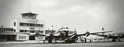 The third terminal building was inaugurated on March 18th, 1950. On October 22, 1955 the "Dakota Airport” was dedicated to Princess Beatrix of the Netherlands during the visit of HRH Queen Juliana. The opening ceremony was presided over by H.R.H. Prince Bernard. Furthermore, during this same year the old Dakota terminal building was changed into the airport fire department garage.