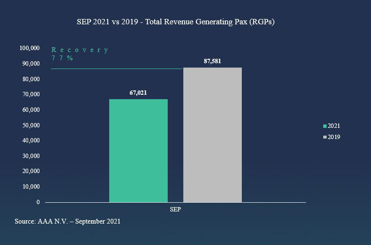 77% di e cantidad di pasaheronan cu a biaha for di Aruba na September 2109 a wordo recupera den September 2021