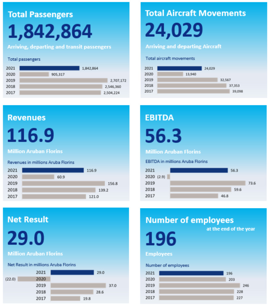 During the past month, AUA Airport averaged 30 flights per day, down from 35 daily flights during the same period in 2019. In that same period in 2020 we only handled a total amount of 481 flights whilst our national border re-opened in July of 2020 for all commercial operations.