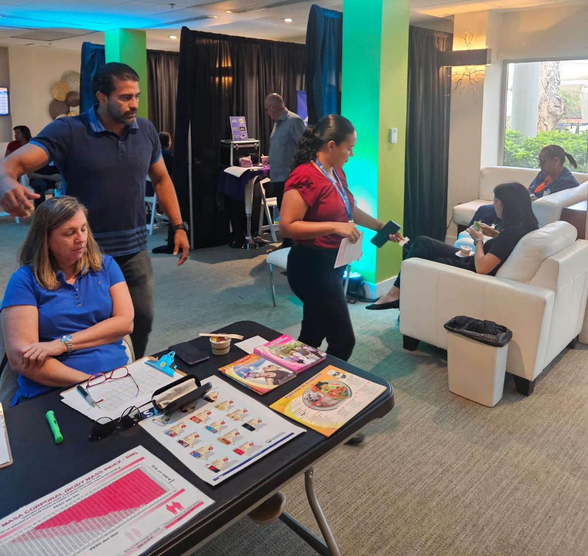 En línea con el enfoque de nuestra empresa sobre el tema de la salud y el bienestar y acorde con los Objetivos de Desarrollo Sostenible (ODS) de las Naciones Unidas, sobre el Chequeo de Salud y Bienestar de la Comunidad Aeroportuaria se celebró un evento de 3 días en el aeropuerto donde se invitó a todas las partes interesadas, terceros y proveedores a pasar por la sala VIP del aeropuerto para completar su chequeo de salud personal. Más de 250 miembros de la comunidad aeroportuaria participaron en el evento, entre ellos personal de la AAA, personal de asistencia en tierra, La Aduana de Aruba, Cuerpo Policial de Aruba, US CBP, Total Cleaning y concesionarios.