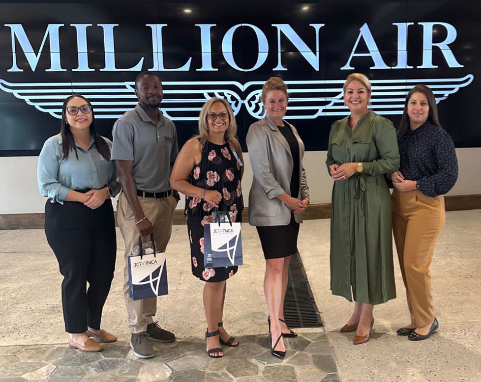 ORANJESTAD – JET-TNCA, el único operador de base fija en Aruba bajo la propiedad de la Autoridad Aeroportuaria de Aruba N.V., ha concluido recientemente una serie de exitosas visitas a sedes en Miami y Nueva York. Las visitas fueron dirigidas por la Ejecutiva de Desarrollo de Negocios de Aviación, Sra. Jo-Anne Meaux-Arends, acompañada por la Gerente de Operaciones de FBO, Sra. Minerva Flemming, y la oficial de Investigación y Desarrollo de Desarrollo de Negocios de Aviación, Sra. Joanne Trimon.