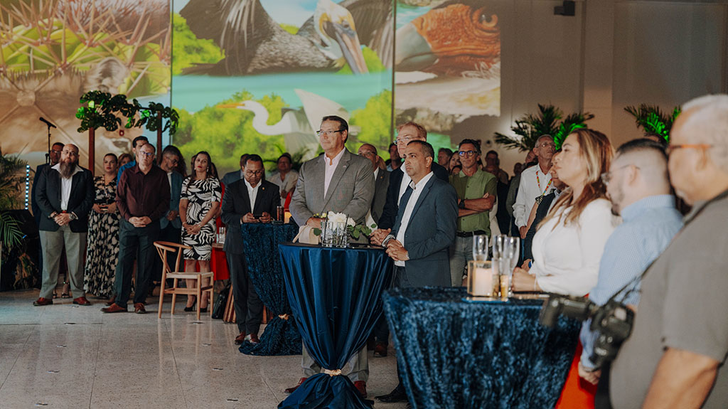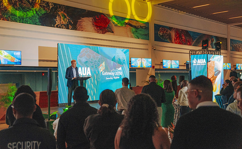 The past week, two fantastic events were held in the new US Departure terminal at Aruba (AUA) Airport with the first evening being and intimate evening for all Aruba Airport Authority N.V. (AAA) staff and the second one for all its stakeholders in the airport and aviation industry. All together over 400 invitees had the opportunity to say farewell to Joost Meijs, the outgoing CEO of AUA Airport. During the second evening, the Governor of Aruba, the Prime Minister, Minister Danguillaume Oduber, Parliament members, airport authorities, and all partners and stakeholders in the aviation industry were in attendance. During both evenings several speeches were given, and a presentation on the project Gateway 2030 was shared. Guests enjoyed the handover of gifts, good food, and good company in an overall delightful atmosphere.