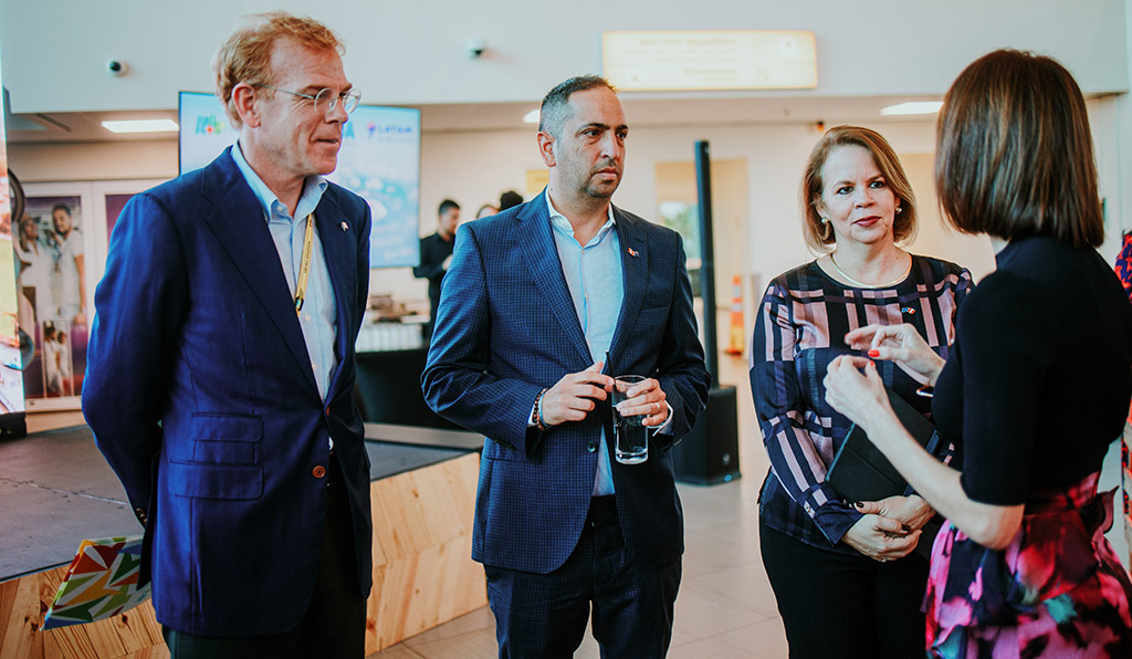 Los pasajeros que llegaron en el vuelo inaugural recibieron una calurosa bienvenida del equipo del aeropuerto de Aruba, acompañada de un pequeño obsequio. La ceremonia oficial de inauguración tuvo lugar en la sala de llegadas del aeropuerto de Aruba, a la que asistieron funcionarios del gobierno, ejecutivos del sector de la aviación, socios de la industria hotelera y estimados invitados. Entre los distinguidos asistentes se encontraban la Primera Ministra de Aruba, Sra. Evelyn Wever-Croes; el Ministro de Turismo y Salud Pública, Sr. Dangui Oduber; la Sra. Ronella Croes, Directora Ejecutiva de ATA; el Sr. Joost Meijs, Director Ejecutivo de AAA; y la Sra. Lucia Davil, Directora de Ventas de LATAM Airlines Perú. El evento concluyó con la tradicional ceremonia de corte de cinta y pastel, que simboliza el inicio oficial de las operaciones de esta nueva ruta.