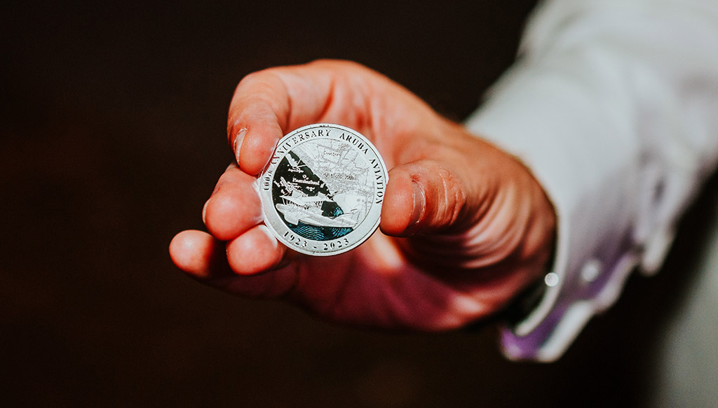 Oranjestad – Gisteren heeft minister van Financiën en Cultuur van Aruba, mw. mr. Xiomara J. Maduro, de eerste officiële herdenkingsmunt geslagen voor 100 jaar Luchtvaart Aruba. De Eerste Slag vond plaats op Dakota Airport, het gebouw dat als de eerste luchthaven fungeerde, en dat tijdens dit evenement ook officieel als monument werd aangewezen. De herdenkingsmunt voor 100 jaar Luchtvaart Aruba wordt geslagen door de Koninklijke Nederlandse Munt, in opdracht van de Centrale Bank van Aruba.