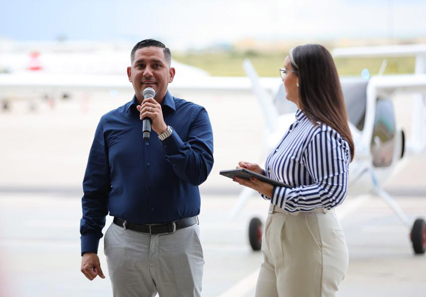 Minister di Transporte, Integridad, Naturalesa y Asuntonan di adulto mayor Ursell Arends, tabatin e honor di ta e prome pasahero den e vuelo electrico aki. “Esaki ta historia den proceso! Pa ta e prome pasahero abordo di un vuelo electrico den region Caribe tabata un honor y alabes un emocion. Sostenibilidad y innovacion ta un parti importante di e vision cu gobierno tin pa futuro y pa por tin e vuelonan electrico aki realisa den region ta un testimonio mas di nos compromiso pa explora, desaroya y implementa esfuerso sostenibel.”