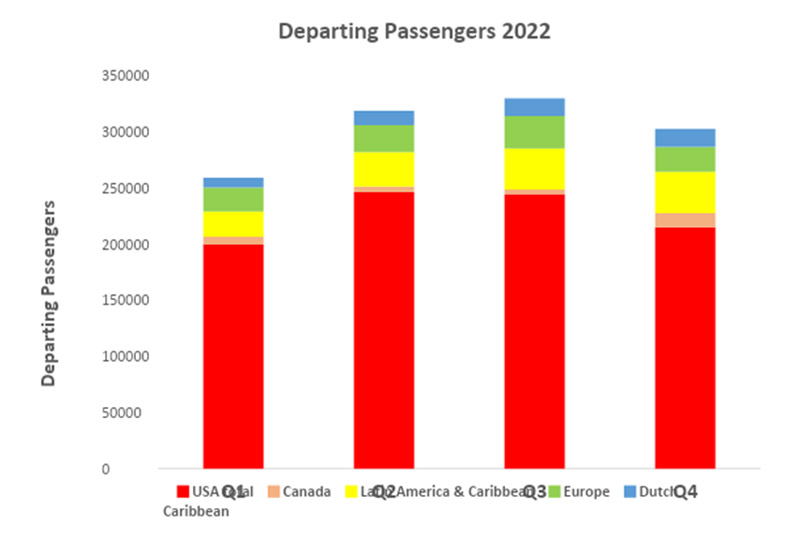 Whilst the US Market represented a total of 81% of the total departing passengers in 2021, this decreased to 75% at the end of 2022. This is in line with the strategy set forth by AUA airport to diversify the markets served from and to AUA airport as much as possible. This resulted in an increase in the market share of the NON-US Market from 19% in 2021 to 25% in 2022.