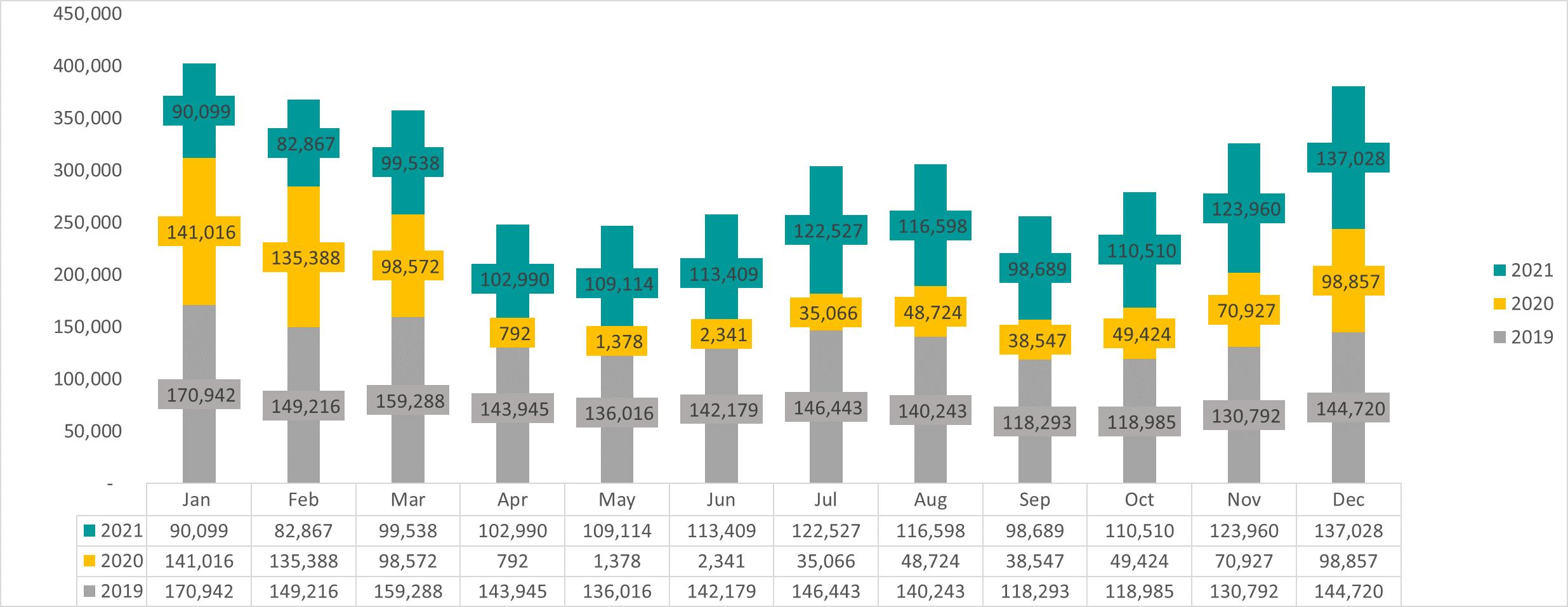 Overall Air Seat Capacity is likely to be at 80% of pre-pandemic levels between June and September, rising to 94% between November and December, depending on the success of the Latin America’s vaccine program and multi-speed travel market recovery, with overall winter traffic potentially at 75-100%.